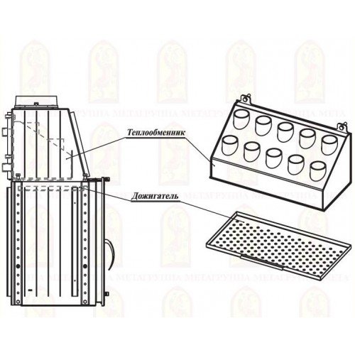 Топка торговой марки  METAFIRE с водяным контуром изготовлена из высококачественной стали и предназначена для устройства камина. Топочная камера футерована толстостенным шамотом. Все топки укомплектованы специальными термостойкими стёклами производства Японии.