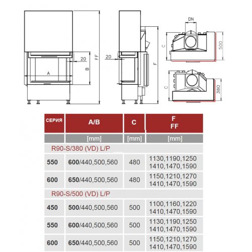 Каминная топка Kobok Corner 500 VD R90-S/500 L/P
