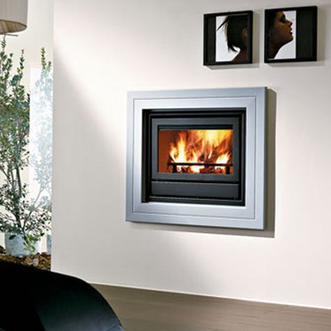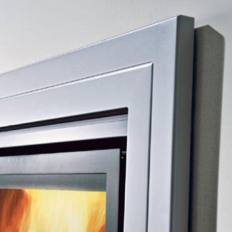 Каминная рамка из лакированной стали темно-серого цвета.